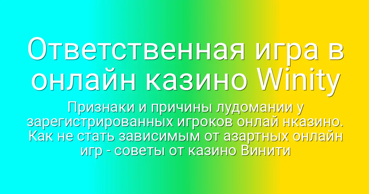 Соблюдение принципов ответственной игры – одно из условий для получения лицензии на игровую деятельность. Задача онлайн казино, поддерживающего принципы ответственной игры – контроль развития у игроков лудомании, недопущение к игре несовершеннолетних, участие в программах, направленных на борьбу с последствиями игровой зависимости. Casino Winity работает по лицензии и придерживается принципов ответственной игры. Если Вам кажется, что у Вас начала развиваться зависимость, напишите сотрудникам службы поддержки казино. Они на время ограничат доступ к игре. Квалифицированную помощь игрокам с зависимостью предоставляют ряд организаций: GamCare, GamblingTherapy и Gambler’s Anonymous.